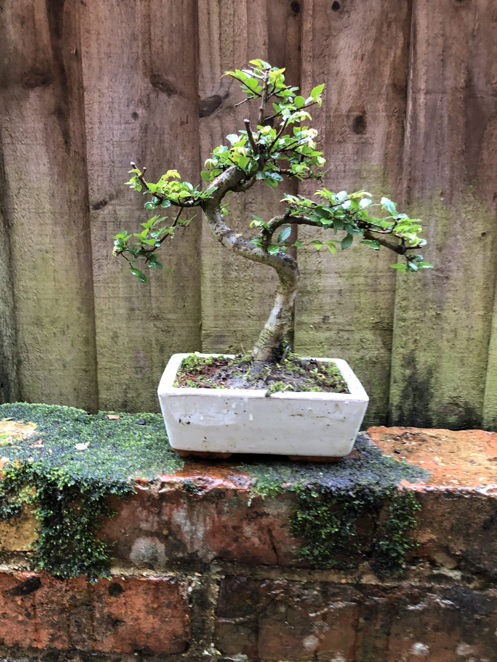 This informal upright shaped Chinese Elm bonsai is the perfect tree for beginners and can be grown indoors in semi shade or full sun outdoors, protect from severe frosts. The tree comes in a cream glazed rectangular ceramic bonsai pot.