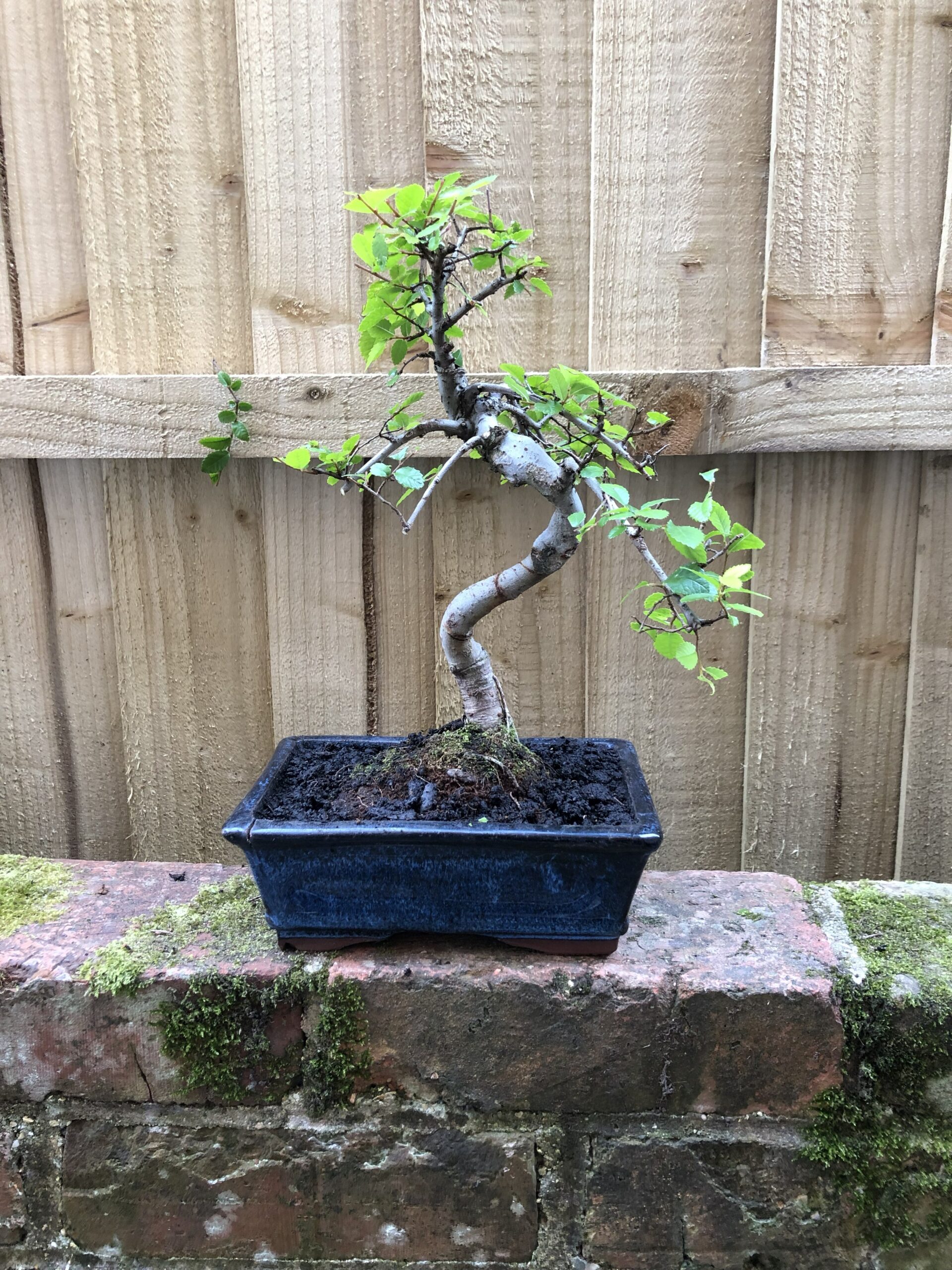 This informal upright shaped Chinese Elm bonsai is the perfect tree for beginners and can be grown indoors in semi shade or full sun outdoors, protect from severe frosts. The tree comes in a blue glazed rectangular ceramic bonsai pot.