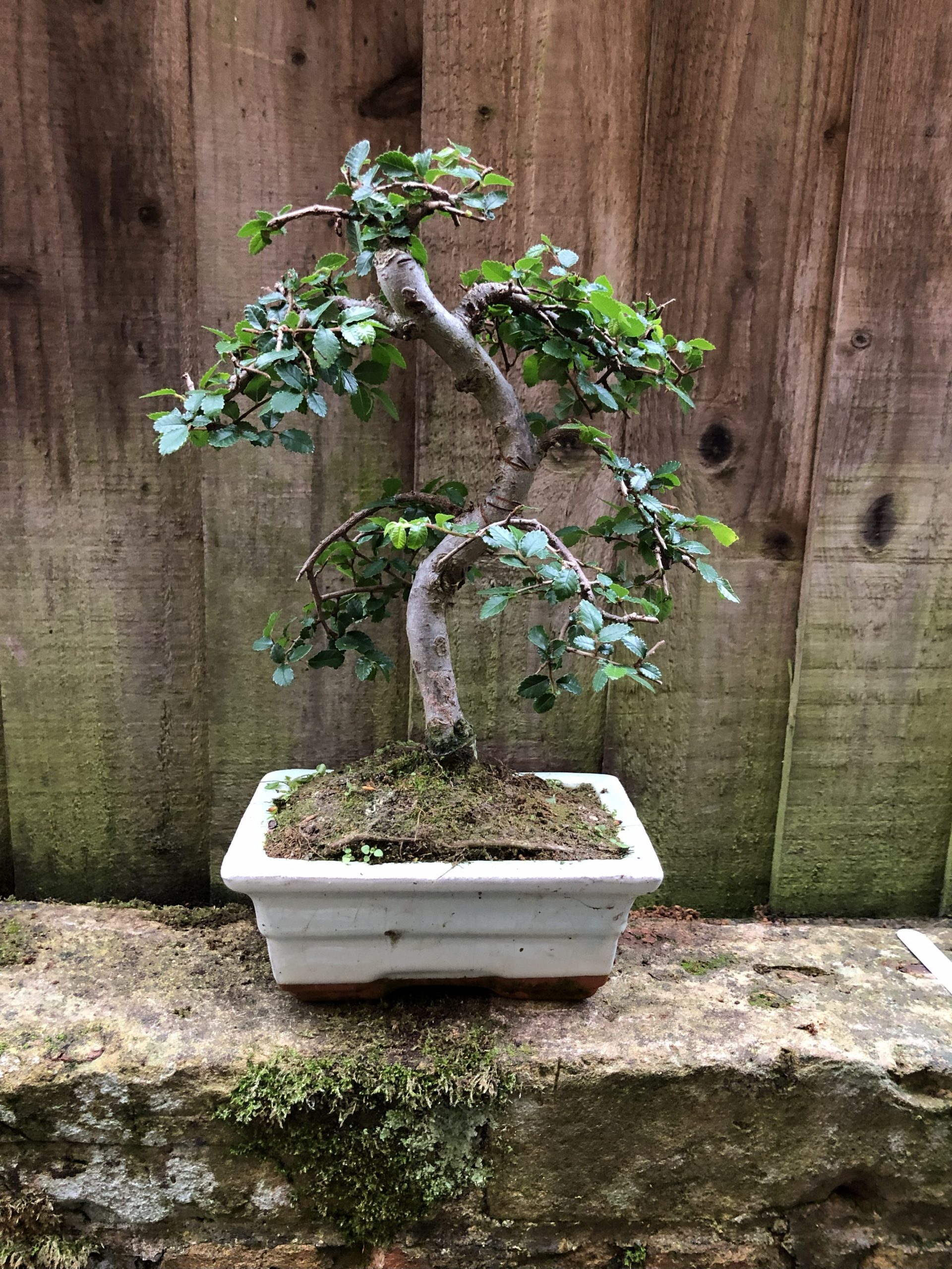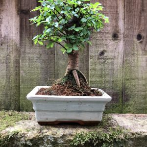 This informal upright shaped Chinese Elm bonsai is the perfect tree for beginners and can be grown indoors in semi shade or full sun outdoors, protect from severe frosts. The tree comes in a white glazed rectangular ceramic bonsai pot.
