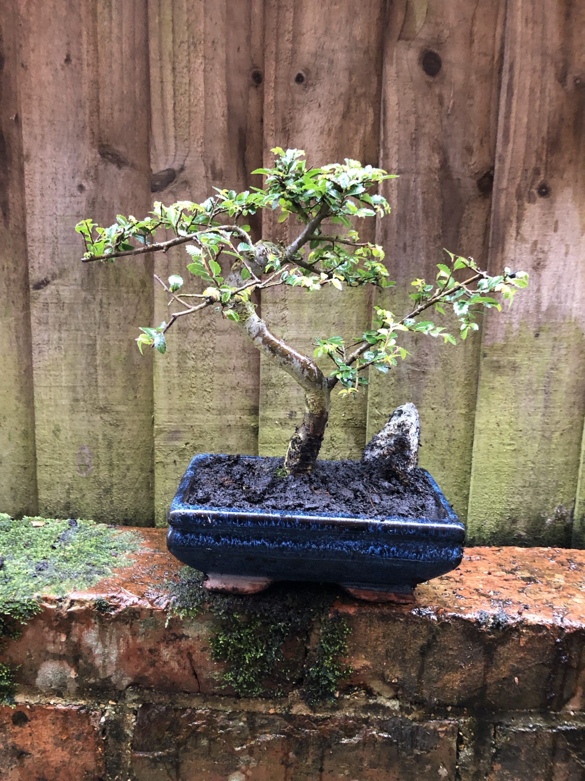 This informal upright shaped Chinese Elm bonsai is the perfect tree for beginners and can be grown indoors in semi shade or full sun outdoors, protect from severe frosts. The tree comes in a blue glazed rectangular ceramic bonsai pot with rock.