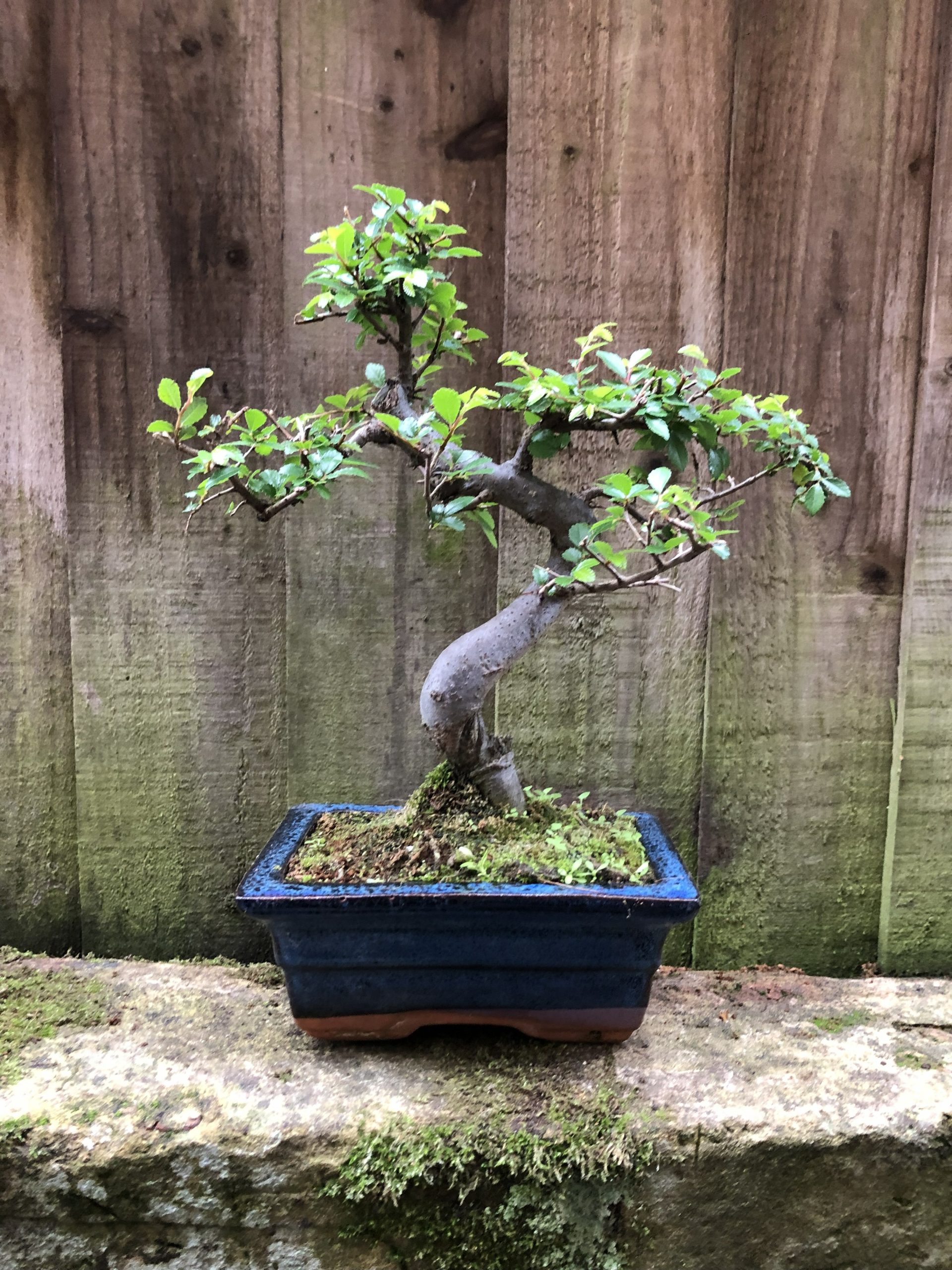 This informal upright shaped Chinese Elm bonsai is the perfect tree for beginners and can be grown indoors in semi shade or full sun outdoors, protect from severe frosts. The tree comes in a white glazed rectangular ceramic bonsai pot.