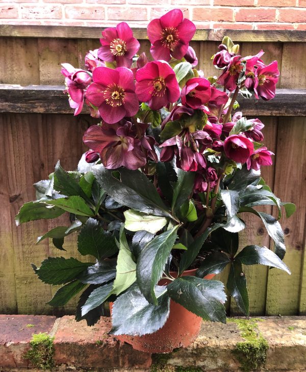 A hardy perennial with leathery green leaves and producing dark red/purple flowers from winter through till the spring,